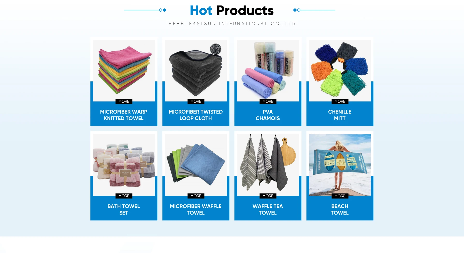 主な製品:マイクロファイバータオル、キッチンクリーニングタオル、ビーチタオル、バスタオル、pvaシャモア